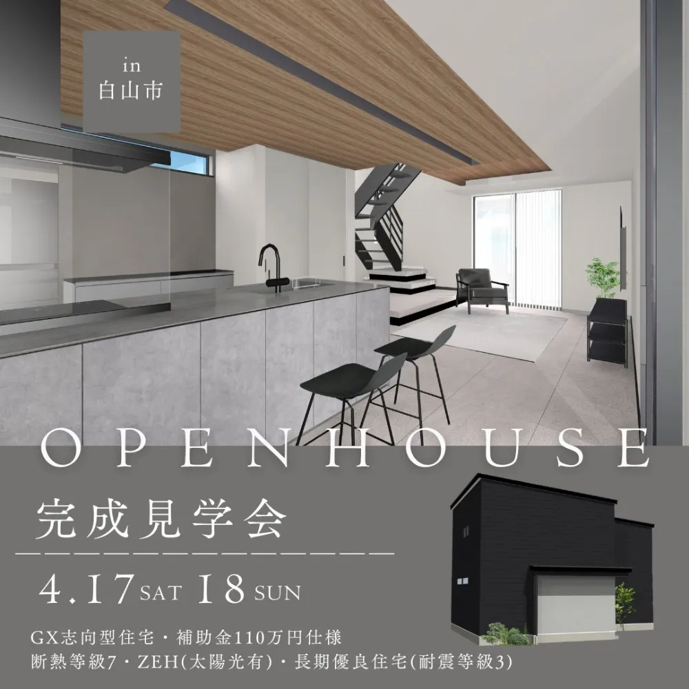 明日に向かうをコンセプトとした。 未来の暮らし環境に優しい、 高性能+パッシブ デザイン体感ハウスが誕生しました。 新世代のマイホームへの想いにお応えしたスーパーウォール工法で建てられた モデルハウスをぜひ体感ください。